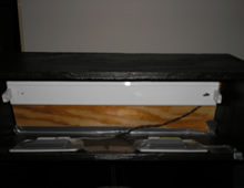 Installed a 20" Fluorescent light fixture to have a backlit marquee. Also taped down 2 flat panel speakers right above the speaker holes. Found a marquee to have printed online because I was too lazy to design my own. Put the file on a thumb drive and took it to staples to have it printed out on gloss paper.