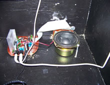 Designed a new marquee and took out the old one and realized the lamp inside had fallen over onto the speak and slightly burned it. Not much damage was done but decided to put some cloth under the speakers to stop light from leaking through.
